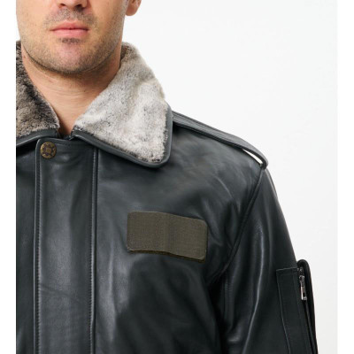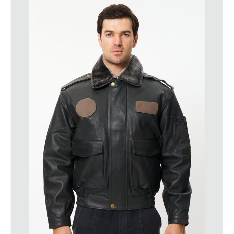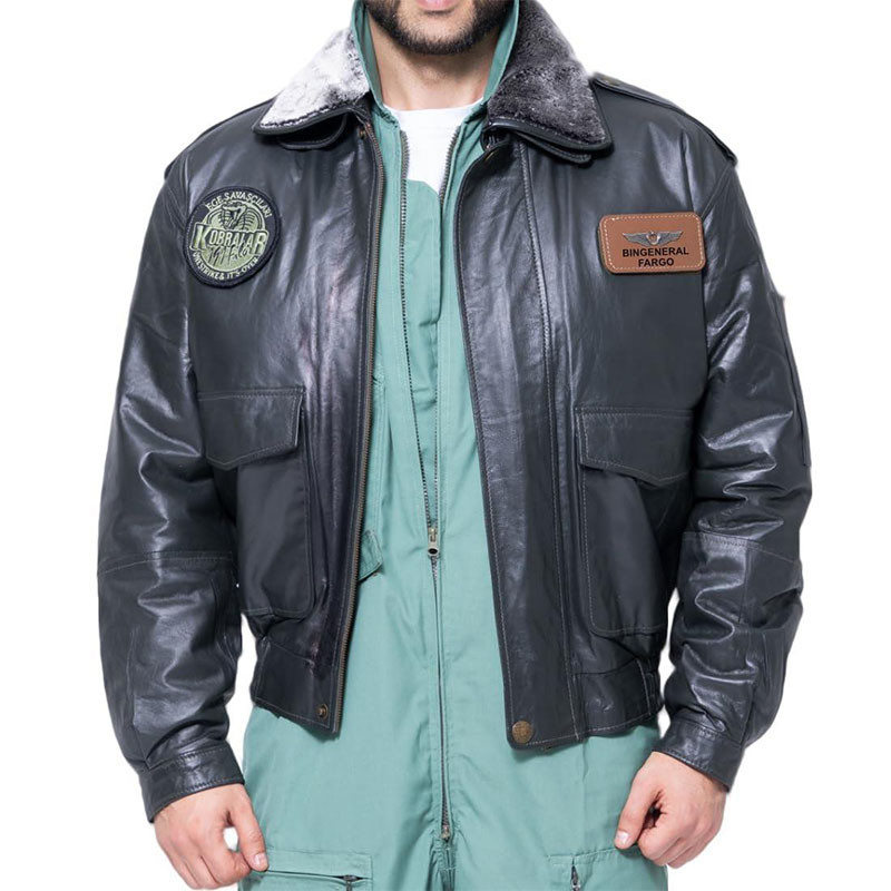 - Deri Yaka: Minimal, sade ve profesyonel pilot montu görünümü.