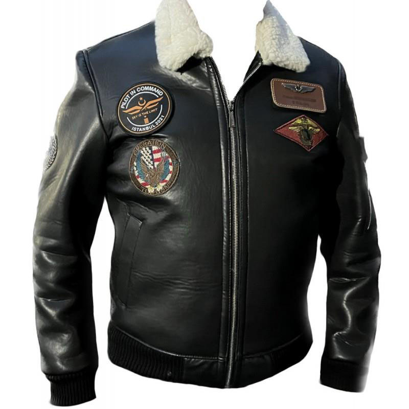 Montun suni deri dış yüzeyi uzun süreli kullanım için dayanıklılık sunarken aynı zamanda klasik pilot montu tarzını modern bir yorumla yansıtır. Çoklu peç alanları, kullanıcıya farklı peç ve armaları mont üzerinde sergileme imkânı sağlar. Bu özellik sayesinde mont kişiselleştirilebilir ve havacılık ruhunu daha belirgin bir şekilde yansıtır. Metal fermuar detayları ve güçlü dikiş yapısı montun sağlamlığını artırır.